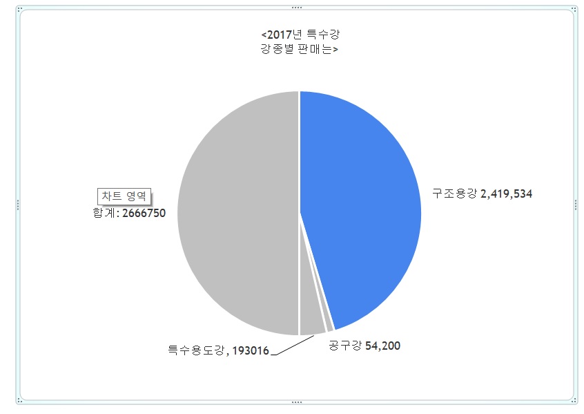 구조용강...241만톤, 공구강 5.4만톤, 특수용도강 19만톤