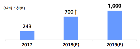 회사 측은 2019년 정상 가동으로 100만톤 생산체제를 완성할 계획이며, 이를 통해 자동차용 판매 비중 증가로 수익이 개선될 전망이라고 설명했다.