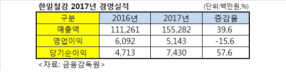 열연 스틸서비스센터(SSC) 한일철강(대표 엄정헌)이 지난해 연결기준 매출액 1,552억8,200만원을 기록하며 전년대비 39.6% 증가했다.