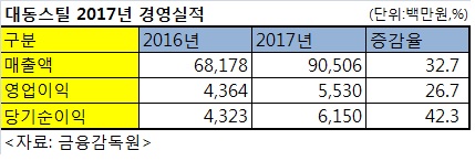 포스코 가공센터 대동스틸(대표 임형기, 임주희)은 지난해 영업이익이 55억3,000만원으로 전년 동기 대비 26.7% 증가했다고 2일 공시했다.