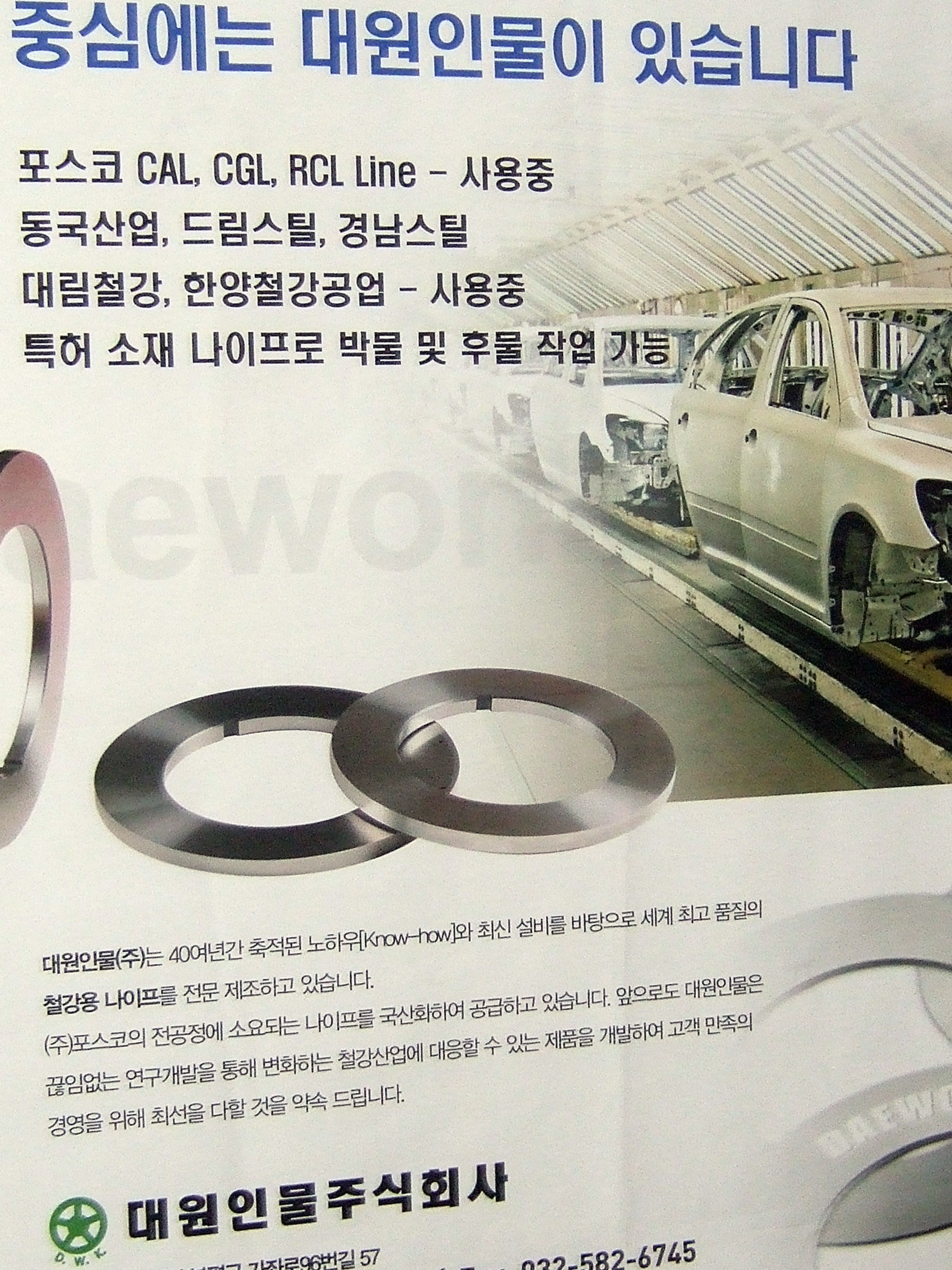 이 회사는 포스코에 스테인리스 판재 절단 전용 나이프로 자체 고유브랜드인 27K57V 재질의 인물(刃物)을 포스코 포항제철소에 납품해오고 있다.