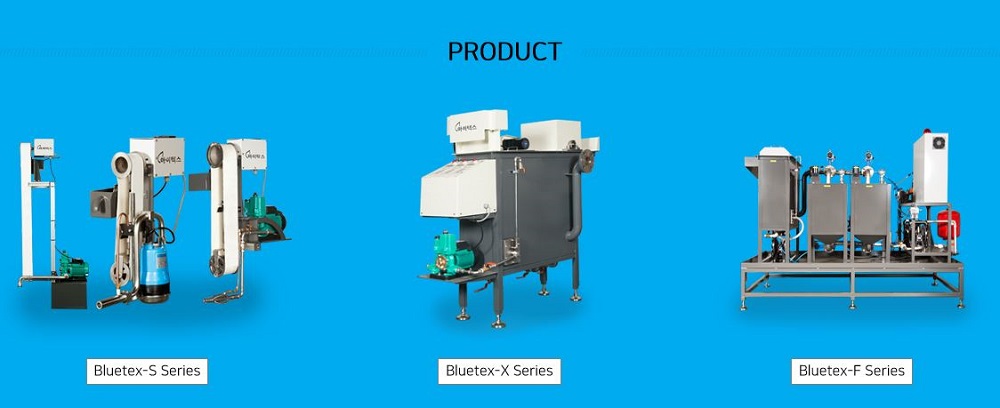 아이텍스 제품은 크게 ‘BLUETEX S-SERIES(클린스키머)’, ‘BLUETEX X-SERIES(정화장치)’, ‘BLUETEX F-SERIES(클린압송장치)’로 구분할 수 있다.
