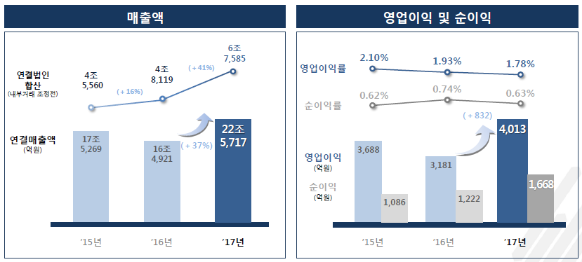 2017년 사상최대 실적, 종합사업회사로 구조 전환