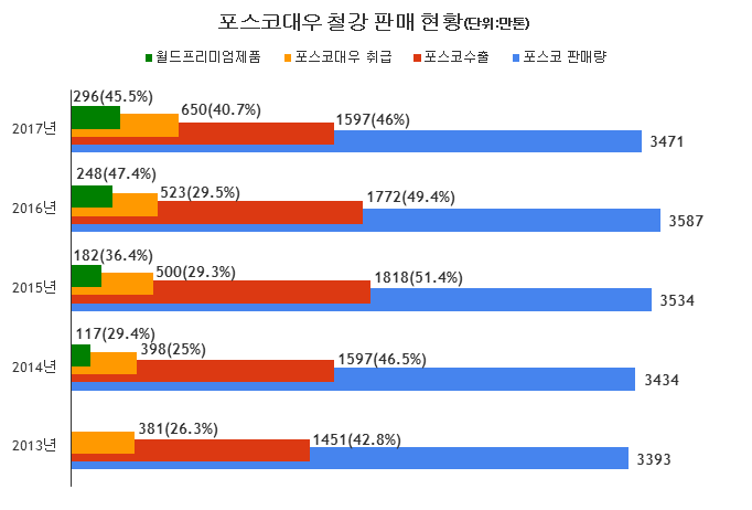 지난해 포스코대우는 사상 최대 실적을 기록했다. 포스코대우의 2017년 매출액은 22조5,717억 원으로 2016년 대비 36.9% 증가했다. 영업이익은 4013억 원을 기록해 전년보다 26.1% 늘었다.