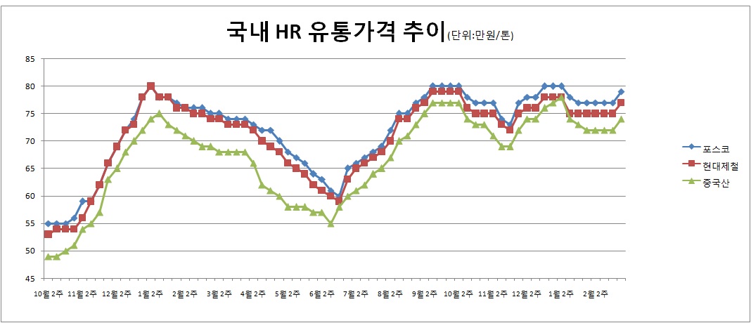3월 열연강판(HR) 유통가격 향방에 관심이 쏠리고 있는 가운데 가격 상승 분위기가 서서히 나타나고 있다.