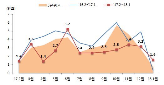 국토교통부에 따르면 1월 주택 착공실적은 전국 2만5,233가구로 전년동월의 2만6,688가구 대비 5.5% 감소했지만 5년평균인 2만5171가구와 비슷한 수준이다.
