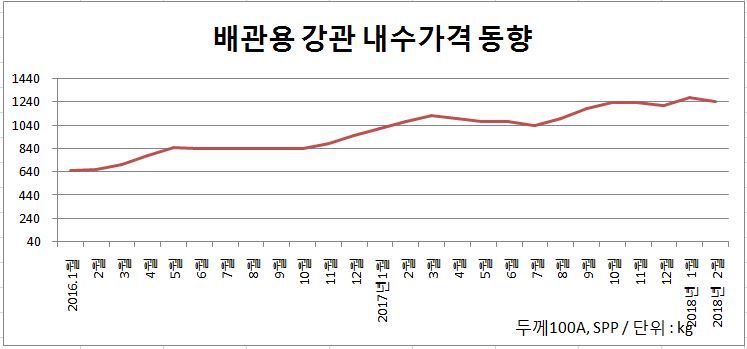 업계 한 관계자는 “추운 날씨의 영향으로 1~2월 배관용 강관 등 제품 판매가 원활하지 못했다”며 “지난해 하반기 가격 인상 실패의 영향과 올해 2월 가격 인상의 절반의 성공에도 아직 제대로된 제품 가격을 받지 못하고 있다”고 말했다.