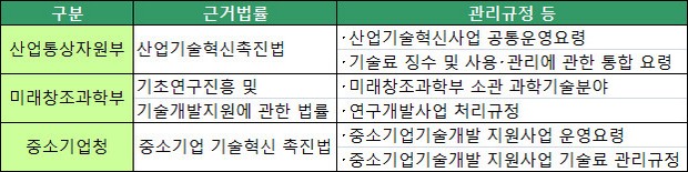 다만, 연구기관과 기업 간의 기술이전 시 기술의 출처에 따라 적용되는 법령이 다르기 때문에 유의해야 한다.