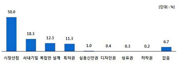 기술축적 방법,시장선점 50%…사내기밀·설계·특허권 순
