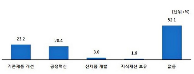 이어 공정혁신 20.4%(5484사), 신제품 개발 3%(793사), 지식재산보유 1.6%(438사) 등의 순이었다.