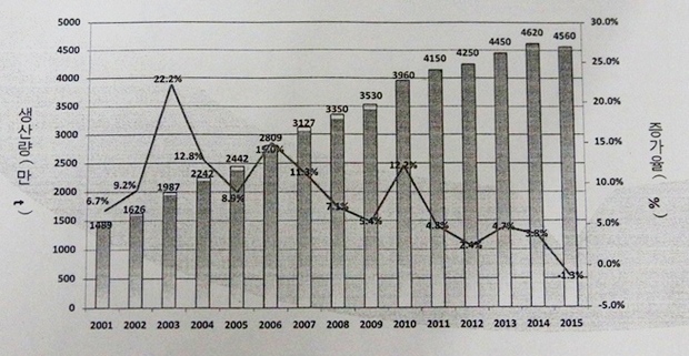 이는 2014년 4,620만톤으로 11% 다시 상승했으나, 세계 경기침체와 현지 내수 침체가 지속되면서 지난해에는 소폭 하락했다고 조 대표는 설명했다.