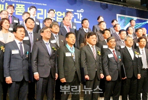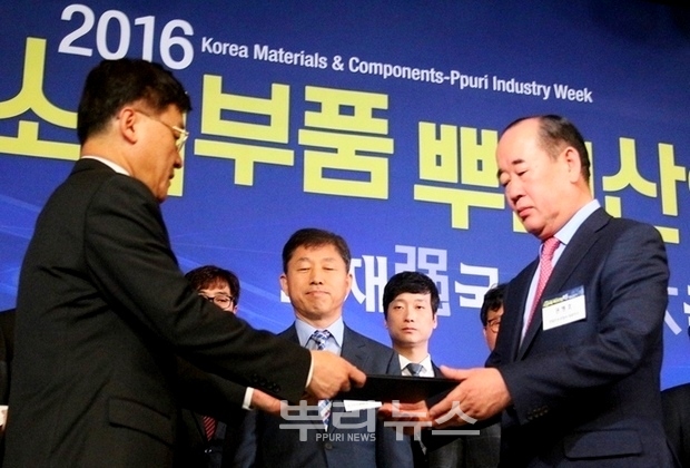 한편, 앞서 진행된 소재부품기술상 수여식에서 금형업체 (주)프로솔 장성환 대표이사가 동탑산업훈장을, 표면처리 업체 삼일금속(주)의 임명규 대표가 국무총리상을 각각 받았다. 한일단조공업(주)의 권병호 대표이사는 산업부 장관 표창을 수상했다.