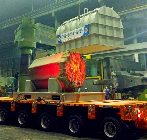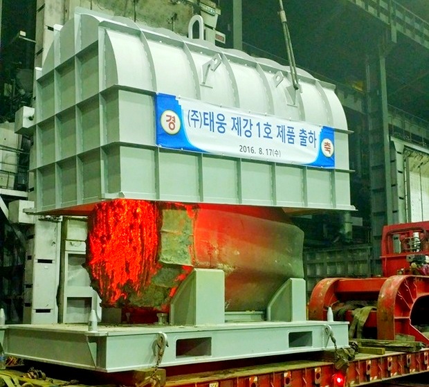 신설 제강공장에서 생산한 잉곳(원소재)이 열괴 상태로 인근의 태웅 단조공장(녹산산단)으로 보내져 바로 생산현장에 투입됐다.