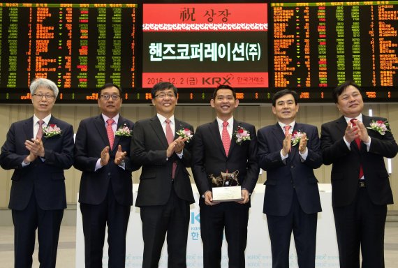 기념식에는 이호철 한국IR협의회 부회장, 이석주 핸즈코퍼레이션㈜ 사장, 이은태 한국거래소 유가증권시장본부장, 승현창 핸즈코퍼레이션㈜ 대표이사, 김성현 KB투자증권 IB총괄대표, 김진규 상장회사협의회 부회장이 참석했다.