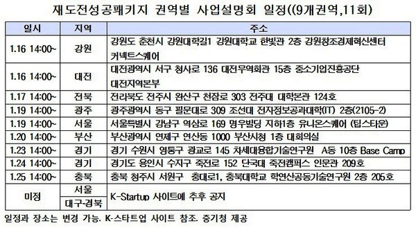 중기청 등은 참여희망 (예비)재창업자를 대상으로 서울, 부산, 대전 등 전국 9개 권역별에서 사업설명회를 개최할 예정이다.