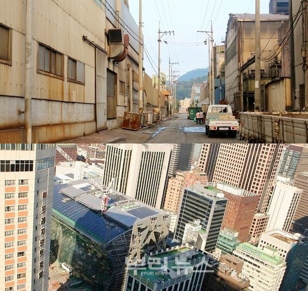 올해 산업부가 동반성장위원회, 대중소기업협력재단과 함께 동반성장 관련 정책을 차질 없이 추진, 올해 뿌리기업 등 중소기업의 성장이 속도를 낼 전망이다. (위부터)주물기업이 밀집한 경남 창원의 마천주물단지와 대기업본사가 밀집한 서울 중구 모습. 정수남 기자