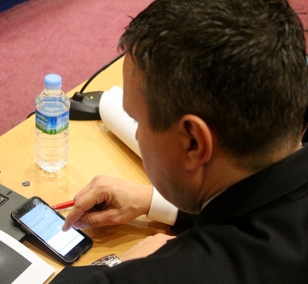 반면, 세계 1위 3D프린터와 3D프린팅 솔루션업체인 미국 스트라타시스의 아태지역 기술디렉터 프레드 피셔는 스마트폰과 노트북을 통한 인터넷으로 이날 자신의 발표 자료를 살폈다.