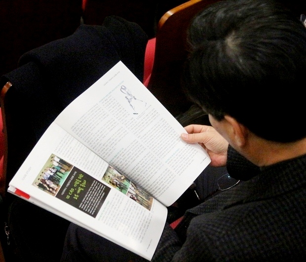 20일 국방·우주항공 3D프린팅 컨퍼런스에 참석한 국적인 참석자들이 종이로 만든 잡지나 자료를 보고있다. 정수남 기자