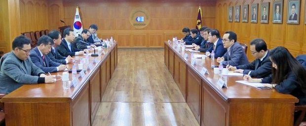 (위부터)도경환 산업통상자원부 산업기반실장이 23일 경북 포항상공회의소에서 철강 업계 애로를 들었다. 이 자리에는 동국제강, 동일산업, 심팩메탈로이, 한국주철관, 넥스틸, 미주제강, TCC동양, 한금, 스틸플라워 등 9개 경북지역 철강업계 대표와 관계자 등 20여명이 참석했다.