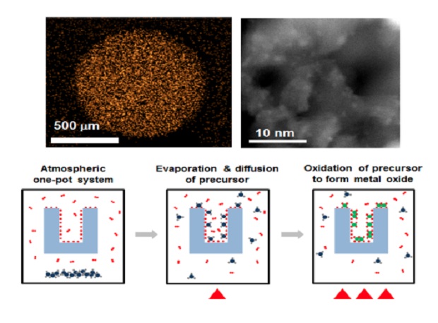 김영독 교수 연구팀은 온도조절 화학기상증착법을 이용해 ‘페로센’이라는 철을 함유하는 유기금속화합물과 대기 중의 산소 및 물을 기상에서 반응시켜 산화철을 형성시키는 기법을 사용했다.