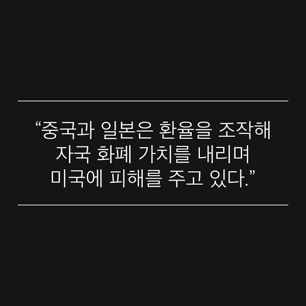 “중국과 일본은 환율을 조작해 자국 화폐 가치를 내리며 미국에 피해를 주고 있다.”
