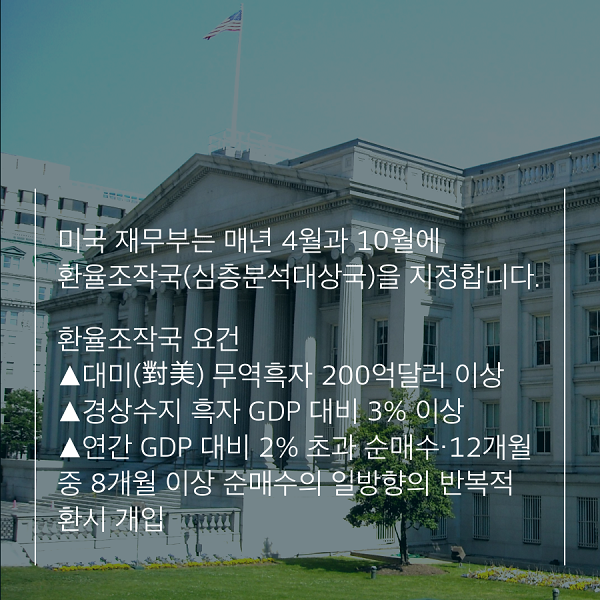 미국 재무부는 매년 4월과 10월에 환율조작국(심층분석대상국)을 지정합니다.