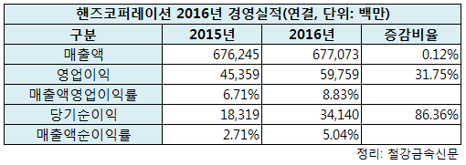 핸즈코퍼레이션, 지난해 영업이익 597억원.. 전년비 31.75%↑