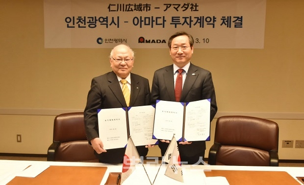 인천광역시(시장 유정복)는 판금가공분야 세계 1위 기업인 일본의 아마다사(AMADA)를 유치하였다고 밝혔다. 일본의 첨단기업 투자유치를 위해 일본을 방문 중인 유정복 시장은 10일 아마다사와 투자계약을 체결하였다고 밝혔다. 아마다는 경제자유구역 송도지구에 ‘아마다 금속가공기계 테크니컬센터’를 건립할 계획이다.