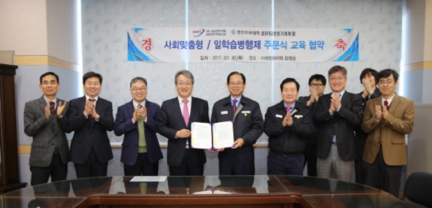 영진전문대학이 공작기계 제조 전문기업인 (주)대성하이텍과 사회맞춤형 주문식교육 및 일학습병행제 학위연계형 계약학과 시행을 위한 협약을 체결했다.