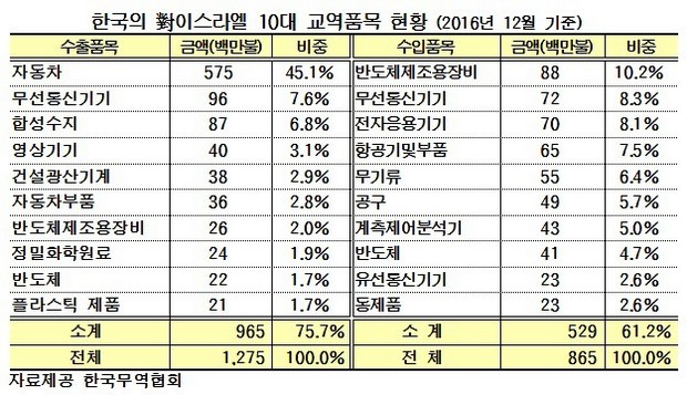 한편, 지난해 한-이스라엘 교역액은 214억달러(24조5,000억원)였으며, 교역 품목 중 자동차가 45.1% 비중을 차지했다. 자동차 1대 제작에는 6대 뿌리기술이 90% 투입된다.