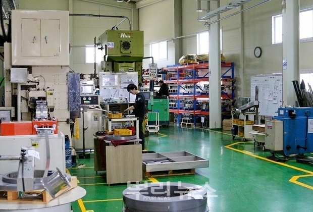 1일 근로자들이 쉬는 날이지만 최근 업황 난조를 극복하기 위해 현지 뿌리업체 근로자들이 구슬땀을 흘리고 있는 모습이 본지 카메라에 잡혔다.