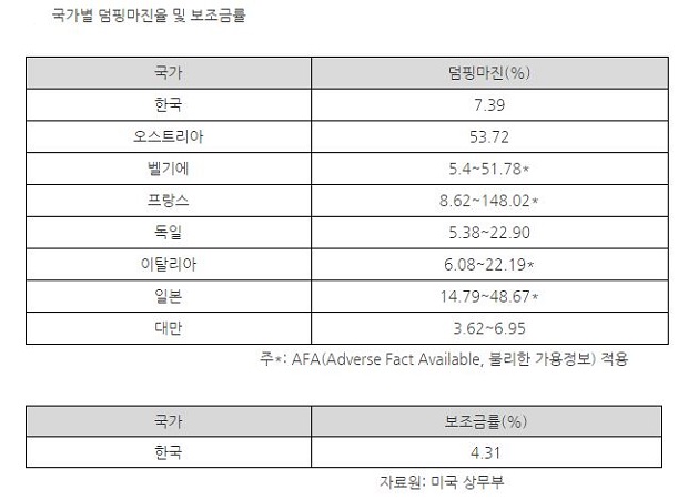 한국산은 한국 정부의 보조금 지급으로 인한 미국 내 산업 피해도 인정돼 상계관세도 부과됐다.