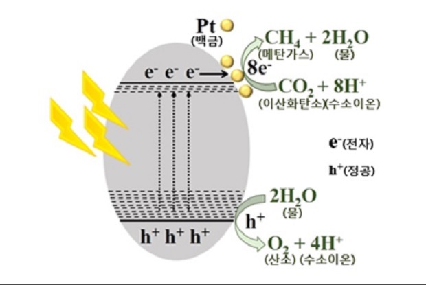 연구팀이 개발한 광촉매는 마그네슘과 수소 기체의 강력한 환원력을 이용해 타이타니아(TiO2) 표면의 산소 원자를 결손시켜 타이타니아 밴드 갭을 조절한 것이 특징이다. 이러한 밴드 갭 조절을 통해 광흡수량을 증가시키고 전하를 효율적으로 분리해 기존의 광촉매 보다 이산화탄소의 메탄 전환율이 3배 높다는 사실을 증명했다.