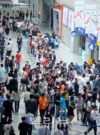 최근 서울 코엑스에서 열린 취업박람회에 일자리를 구하는 청년들이