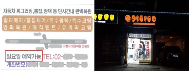 이들 업체는 자동차 광택, 외형복원, 흠집제거 등 외장관리 전문업체로 간판을 달고 허가 업체보다 상대적으로 싼 가격에 수요를 형성하면서 저렴한 가격으로 고객을 유인하고 있어 매년 단속에도 불구하고 불법행위가 좀처럼 근절되지 않고 있다.