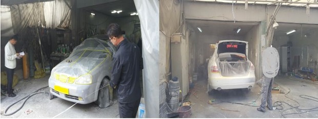 일부 사업장은 주차장 안쪽에 철문을 달아 작업장을 개조하기도 하고 간판에는 자동차 도장을 한다는 내용을 전혀 표기하지 않고 방청, 언더코팅 등으로 표기하여 은밀하게 도장 작업을 하는 곳임을 암시하기도 했다.