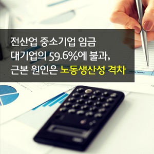산업연구원(KIET)이 발표한 ‘대·중소기업 간 임금격차 분석과 시사점’ 보고서에 따르면, 2016년 현재 전 산업의 중소기업 임금은 대기업의 59.6%에 불과하고 제조업의 경우 중소기업 임금은 대기업의 51.5%라고 밝혔다.