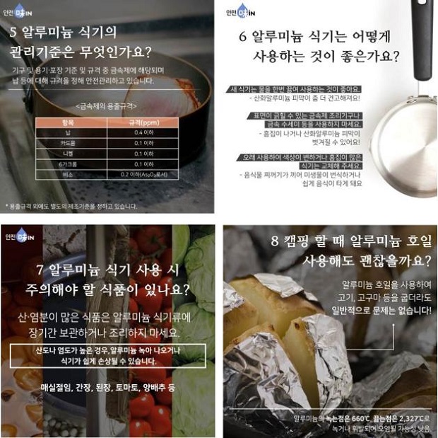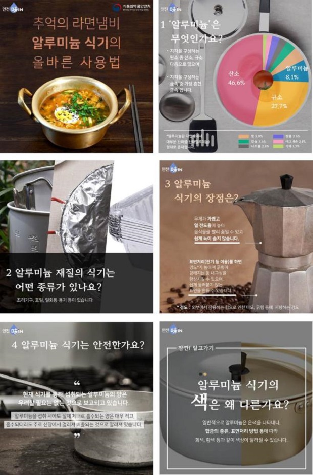 한편 식약처는 알루미늄 식기에 대한 정보를 국민이 알기 쉽게 ‘알루미늄 식기의 올바른 사용법’과 관련된 카드뉴스도 함께 배포할 계획이다.