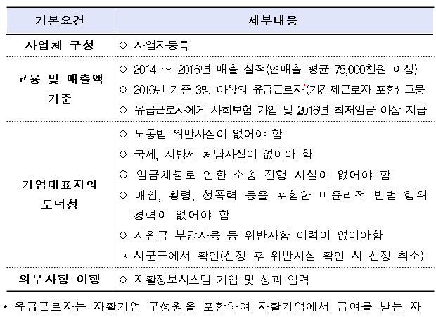 기본요건 충족하는 자활기업만 우수 자활기업 신청 가능