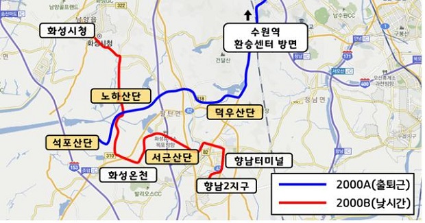 이번에 개통되는 따복버스 2000번은 A와 B노선으로 구성되며, 2000A는 출퇴근 시간대 수원역과 화성 산업공단을, 2000B는 낮 시간 대 화성시청과 화성 산업공단, 향남1·2신도시를 오고간다.