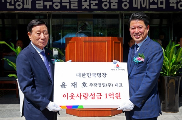 윤재호 주광정밀(주) 대표이사, 이웃돕기 성금 1억원 쾌척