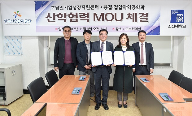 조선대학교(총장 강동완) 용접·접합과학공학과(학과장 방희선)는 11월 9일 오전 11시 교수회의실에서 한국산업단지공단 광주전남지역본부 호남권기업성장지원센터(센터장 전태웅)와 상호 협력을 통한 공동발전과 원활한 업무추진을 위하여 협약을 체결했다.