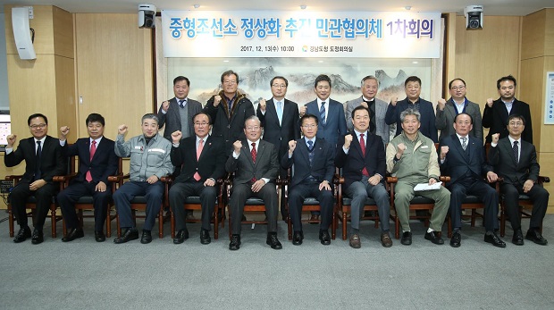 경상남도는 지난 13일 도청에서 관계 국회의원과 도의원, 시장·군수, 중형조선소 대표, 조선해양기자재협동조합, 상공회의소와 경영자총협회 대표, 시민단체 대표, 대학 교수 등 24명이 참석한 가운데 ‘중형조선소 정상화 추진 민관협의체 제1차 회의’를 열고, 중형조선소 살리기에 도민의 힘을 모아가기로 했다.