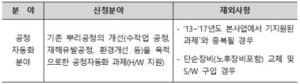 공정자동화 분야에 총 사업비의 50%, 최대 1억 원 지원