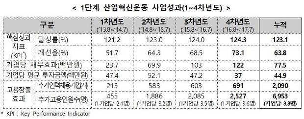 산업혁신운동 1단계, 4,127억 원 재무 효과, 일자리 7,000개 창출