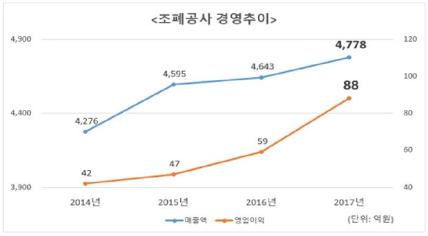 조폐공사는 우선 더 좋은 일자리 창출 중심의 사회적 가치실현을 위해 올 상반기 중 정원의 5%에 달하는 75명의 청년을 블라인드 방식으로 채용할 방침이다. 조폐공사는 2014년 50명, 2015년 49명, 2016년 71명, 2017년 60명 등 최근 4년간 230명을 신규 채용한 바 있다.