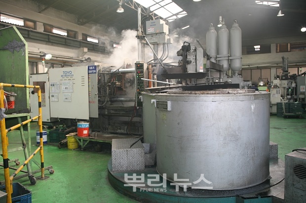 (주)일신다이캐스팅에서 가동 중인 주조용 용해로. (사진=뿌리뉴스)