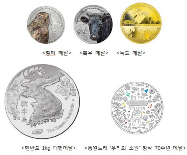 광복 70주년을 맞이해 제작한 민족지도자 백범 ‘김구’ 선생과 ‘윤봉길’, ‘이봉창’ 등 광복을 위해 노력하신 위인 11인, 우리 땅 ‘독도’ 등은 인물 메달에 요판화(Engraving)를 곁들인 제품으로 선보인다.