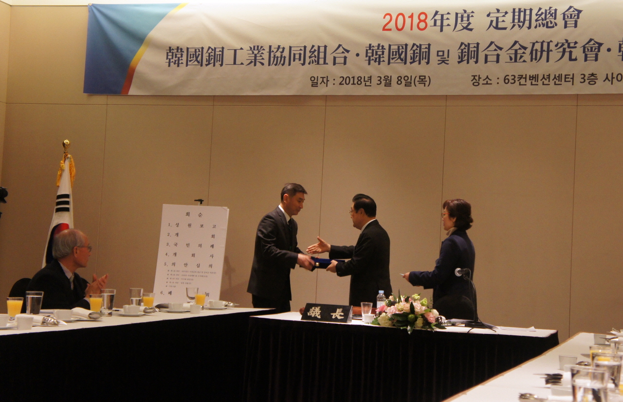 한편 ㈜봉산 김만현 팀장과 ㈜부광금속 백윤미 차장은 동산업 발전에 기여한 공이 큰 회원사 직원에게 주어지는 이사장 격려상을, ㈜대창 이청근 과장과 ㈜삼환실업 장광현 차징은 동 연구발전에 기여한 공이 큰 회원사 직원에게 주어지는 소운상을 각각 수상했다.