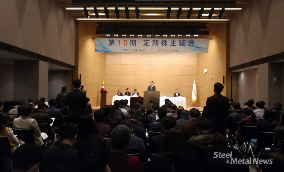 풍산은 16일 오전 서울 충정로 사옥 대강당에서 진행된 제10기 주주총회에서 재무제표 승인 및 이사 선임, 이사 보수한도 승인 등의 안건을 처리했다.
